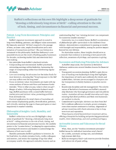 visers means emphasising quality, diversification, patience, • Commitment to principle: Advisers can draw from Buf-