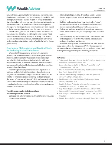 plan. Australian advisers compare this to maintaining strong • Building and maintaining a “margin of safety”: don’t