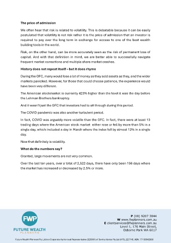 postulated that volatility is not risk rather it is the price of admission that an investor is